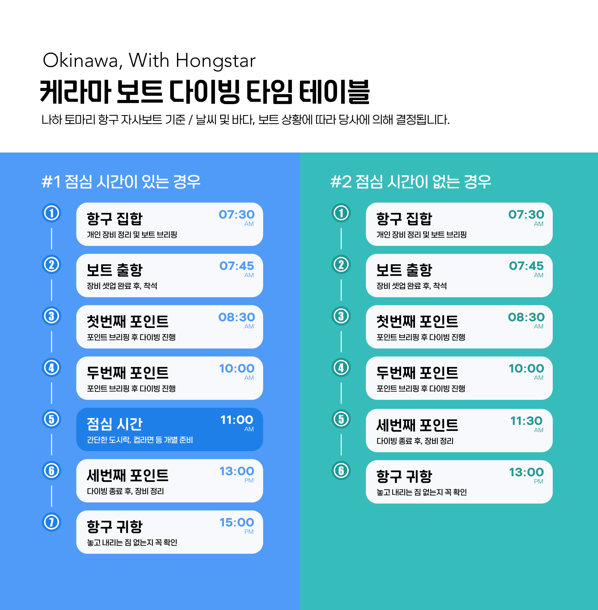 오키나와 다이빙 시간 및 진행 (3탱크 & 2탱크)